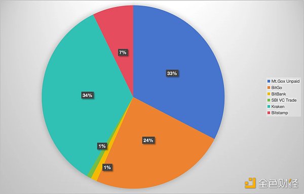 Mt.Gox 一共通過 5 家交易所執(zhí)行賠付,分別是 Bitbank、SBIVCTrade、Kraken、Bitstamp、BitGo,由于在 7 月 31 日之前前四家交易所都已經(jīng)收到來自 Mt.Gox 的Bitcoin,所以在當日收到 33963 枚Bitcoin的地址極有可能屬于 BitGo。