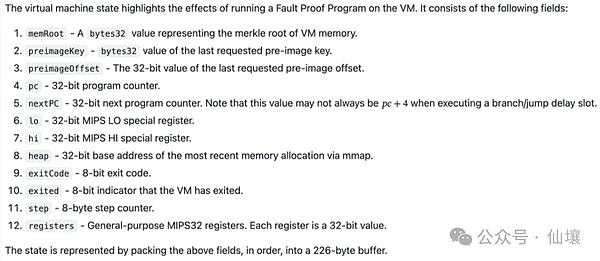 對于第二個問題,OP開發團隊用Solidity編寫了一個MIPS虛擬機,實現了OP節點客戶端中的部分功能,足夠欺詐證明系統所用。MIPS是一種常見的CPU指令集架構,而OP定序器的代碼是用Golang/Rust等高級語言編寫的,我們可以將Golang/Rust寫的程序編譯為MIPS程序,然后通過Ethereum鏈上的MIPS虛擬機進行處理。