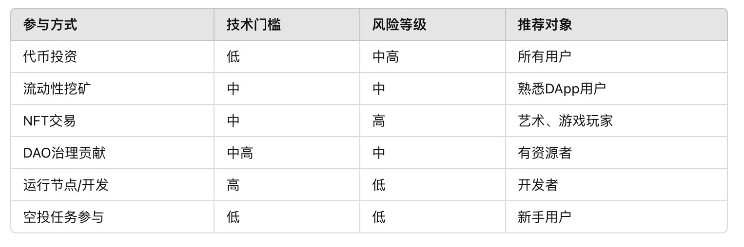 在這樣的架構(gòu)下,用戶不僅是使用者,更是建設(shè)者與權(quán)益分享者,因此Web3為參與者提供了多種收益途徑。