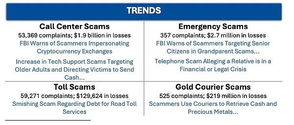 2024年,IC3收到333,981起網絡詐騙投訴,造成137億美元損失,占全年總損失的83%。主要交易方式包括Crypto、電匯、信用卡支付等。