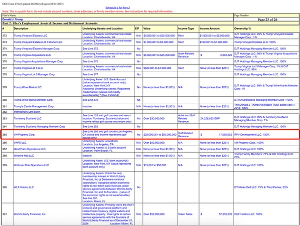 上周五,白宮政府道德辦公室發布了特朗普的財務狀況披露文件,也讓我們得以窺見天宮的一角。在這份長達234頁的文件中,一個橫跨房地產、旅游業、傳媒業以及Crypto的商業帝國赫然成型,